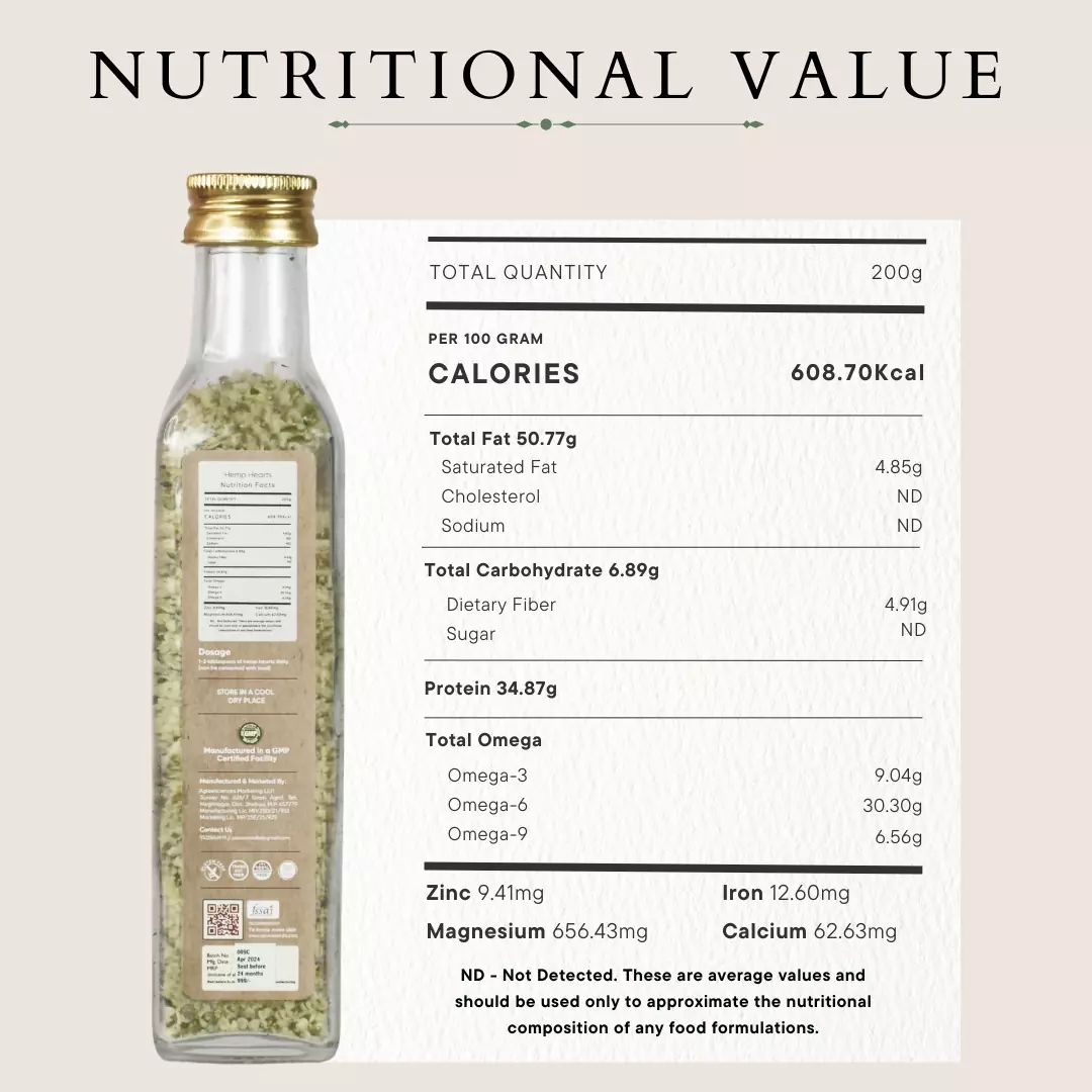 Hemp hearts are obtained from the hemp plant. It holds a variety of polyunsaturated fatty acids namely linoleic, alpha-linoleic, and gamma-linoleic polyunsaturated fatty acids. In addition, it has a 3:1 ratio of omega-6 to omega-3 fatty acids. These hearts are loaded with essential nutrients, vitamins and have a nutty flavor. They are a rich source of protein and can be consumed daily in a diet. They improve blood levels of essential fatty acids and protect the heart and skin. Hemp hearts can also be used to reduce PMS (premenstrual syndrome) and menopause symptoms.