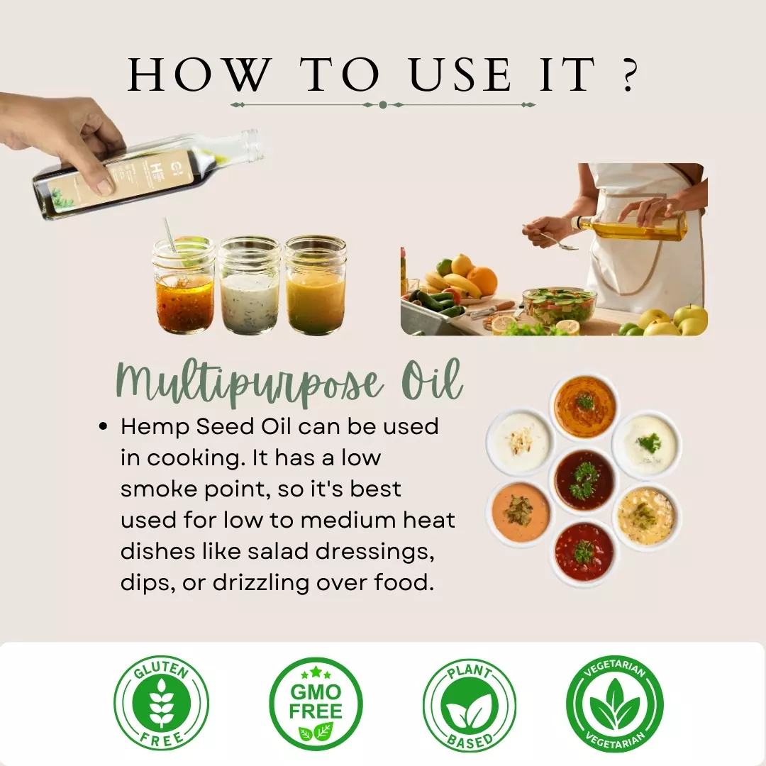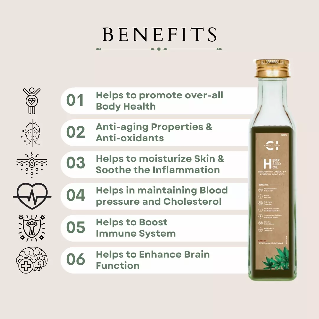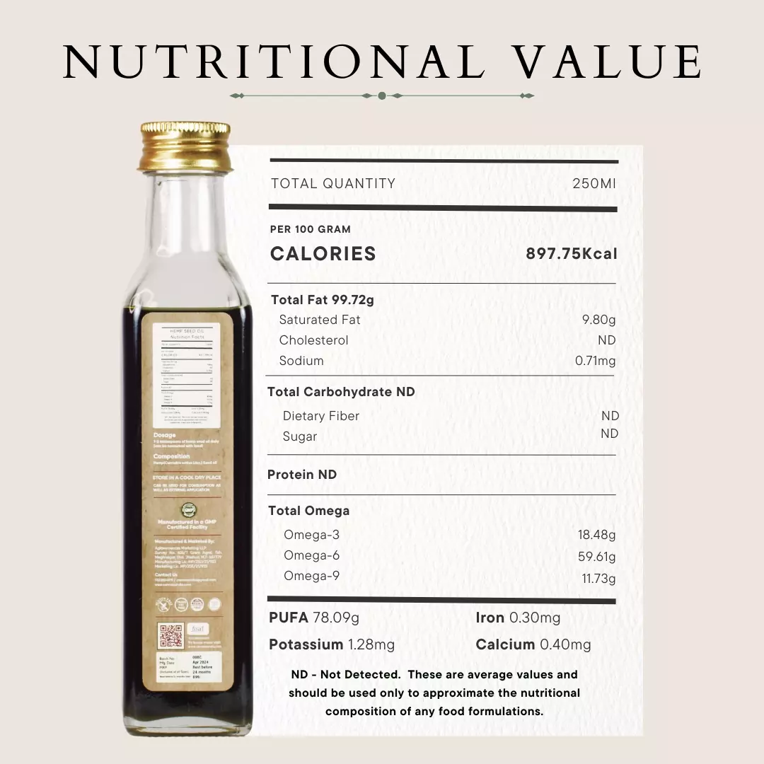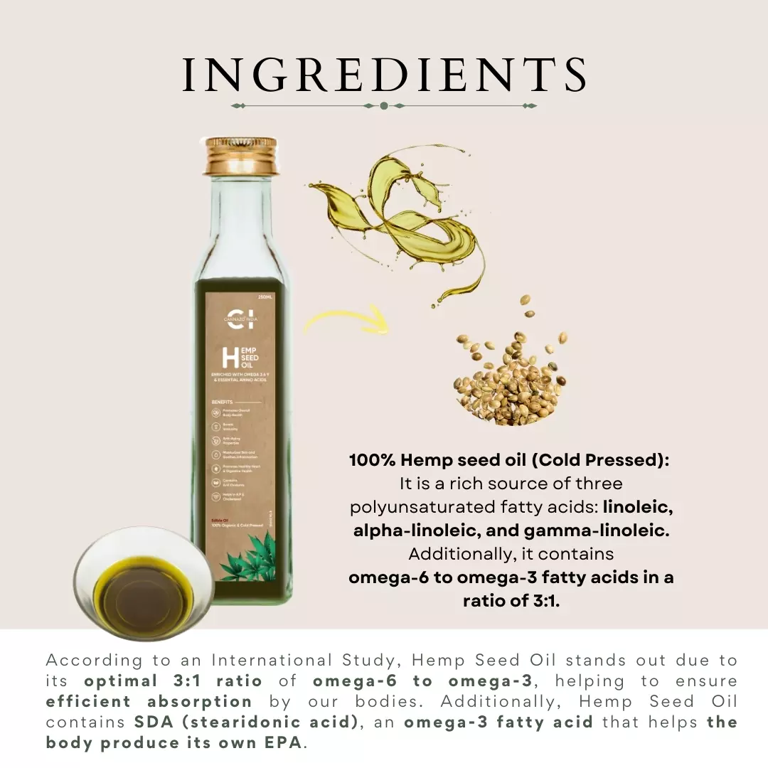 Hemp Seed Oil is a rich source of three polyunsaturated fatty acids: linoleic, alpha-linoleic, and gamma-linoleic. Additionally, it contains omega-6 to omega-3 fatty acids in a ratio of 3:1.