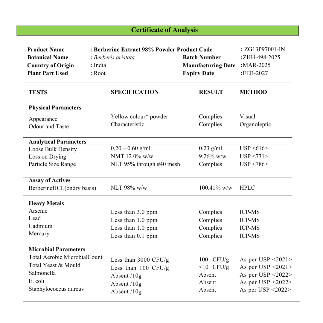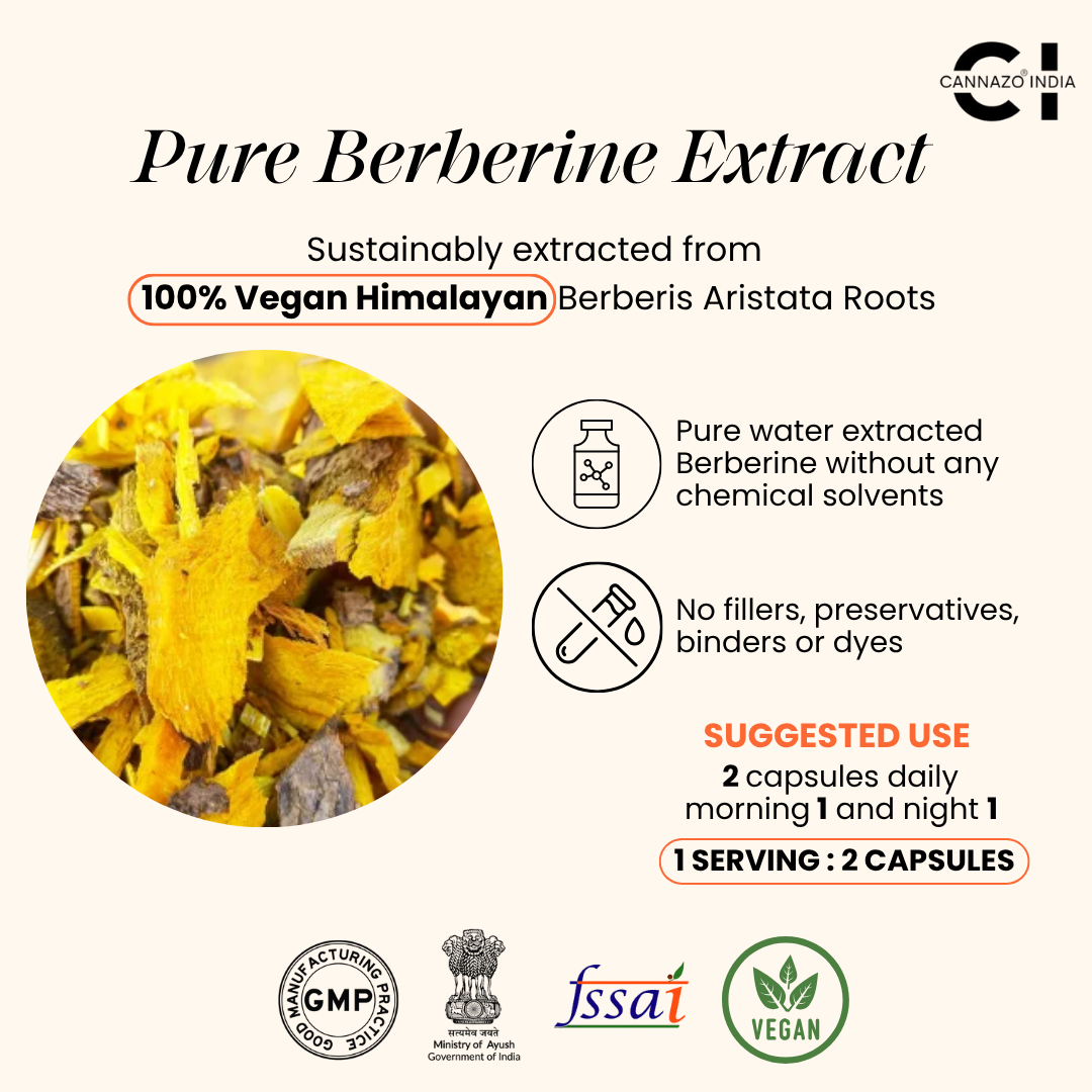 - India’s first Liposomal Berberine 98% HCl+ – 13.6x more bioavailable than standard berberine, extracted from pure Himalayan Berberis aristata roots.