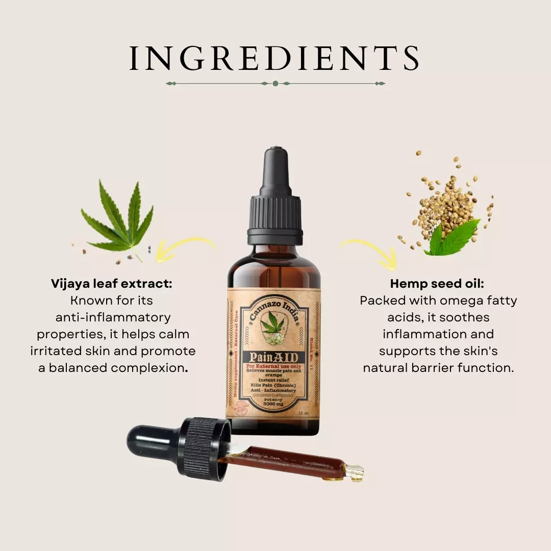 Pain Aid External, is an Ayurvedic formulation which contains a powerful mixture of Vijaya leaf extract and hemp seed oil.