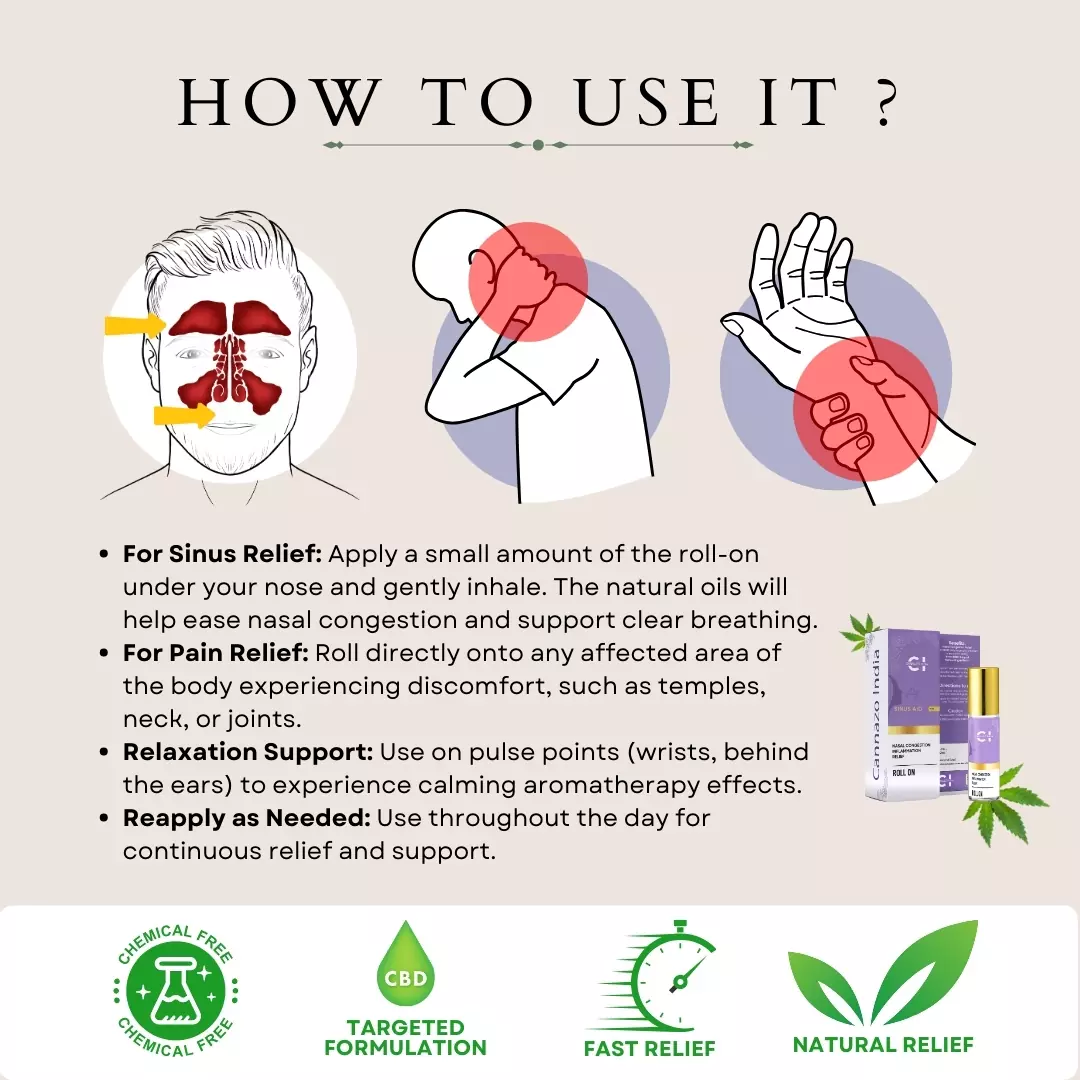 Sinus Aid Roll-On is a natural, topical remedy designed to provide quick relief from sinus-related discomfort. Formulated with Vijaya leaf extract, eucalyptus oil, lemongrass oil, and hemp seed oil, it helps clear nasal congestion, reduce sinus pressure, and ease wheeziness. Its soothing aroma promotes relaxation, while the compact roll-on design ensures easy, mess-free application. Perfect for on-the-go relief, it’s a gentle, effective solution for sinus woes, free from synthetic additives and suitable for daily use.